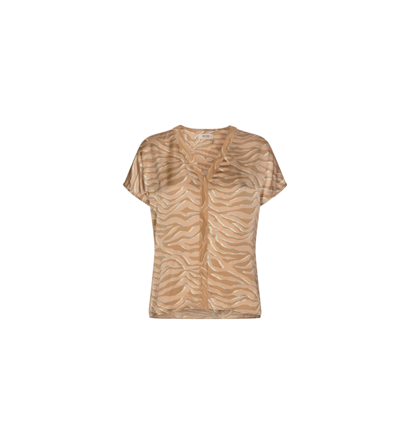 Fin blus med korta ärmar och tygdetaljer längs halsringningen och framtill. Kombinera den med vita jeans eller beigea byxor för en sofistikerad ton-i-ton look