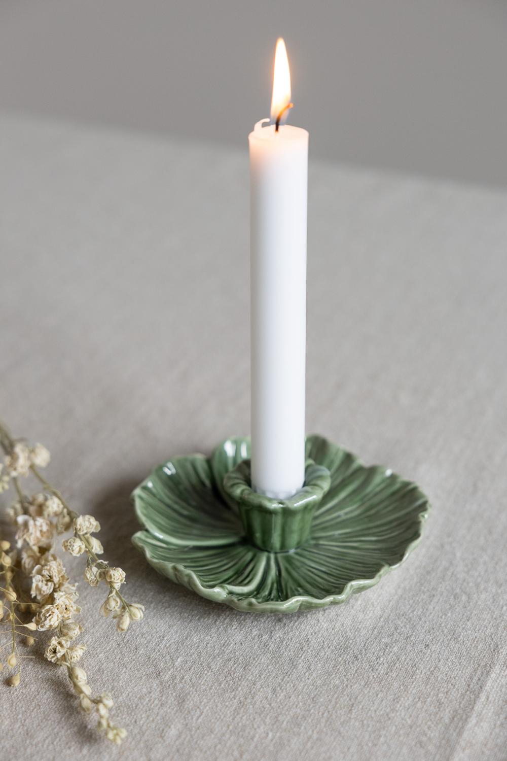 Keramikljusstake i form av en blomma. Detta vackra konstverk är både dekorativt och funktionellt.