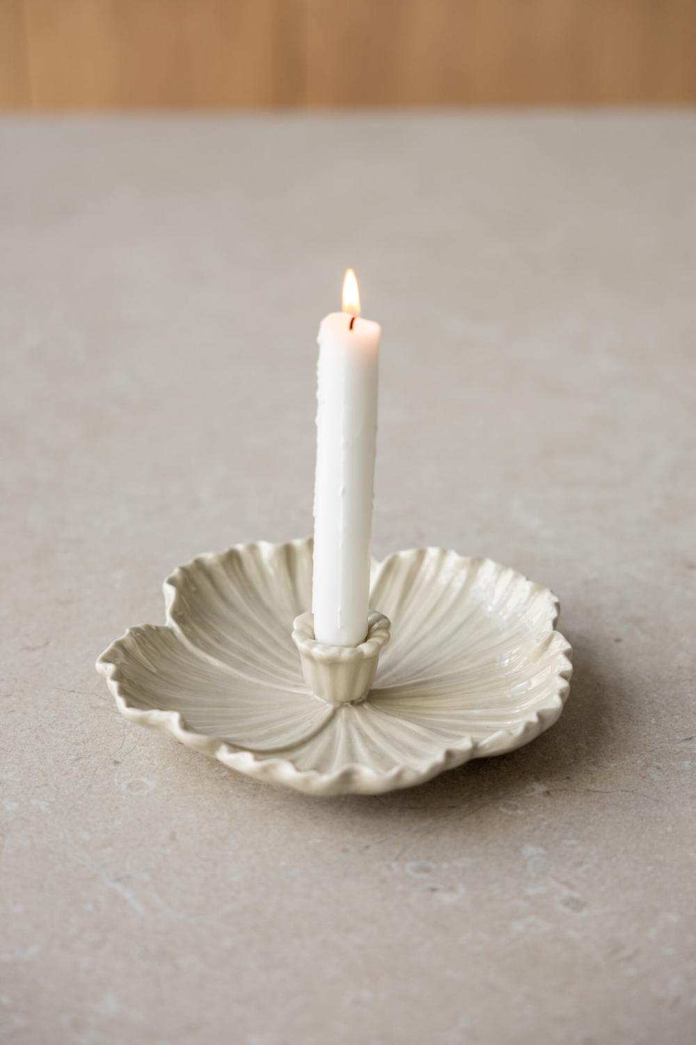 Keramikljusstake i form av en blomma. Detta vackra konstverk är både dekorativt och funktionellt.