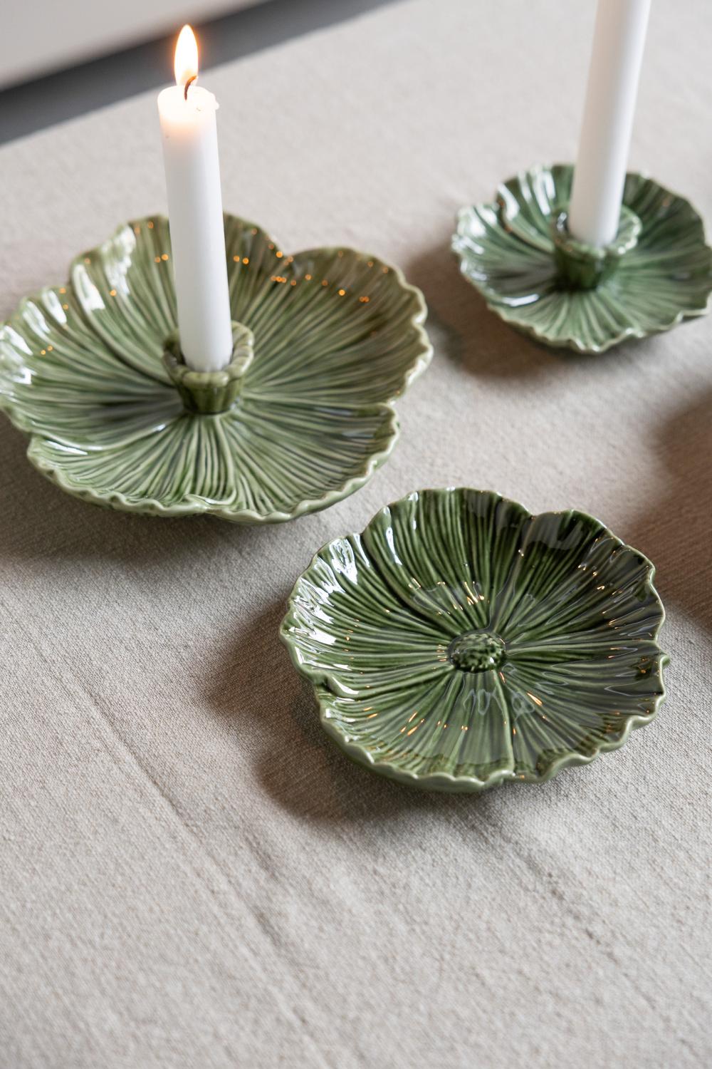 Keramikljusstake i form av en blomma. Detta vackra konstverk är både dekorativt och funktionellt.