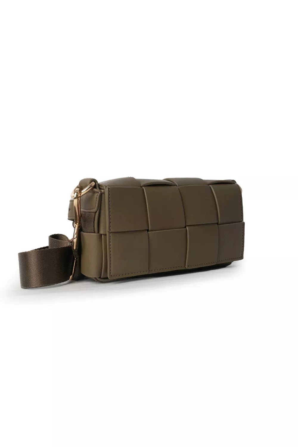 En elegant, mindre flätad axelväska som stängs med dolda magneter. Tre avtagbara axelremmar ingår, en justerbar bredare rem gjord i nylon. De andra två smalare banden är i samma material som väskan, där den ena används som axelrem och med det andra bandet kan väskan bäras som ett bälte.