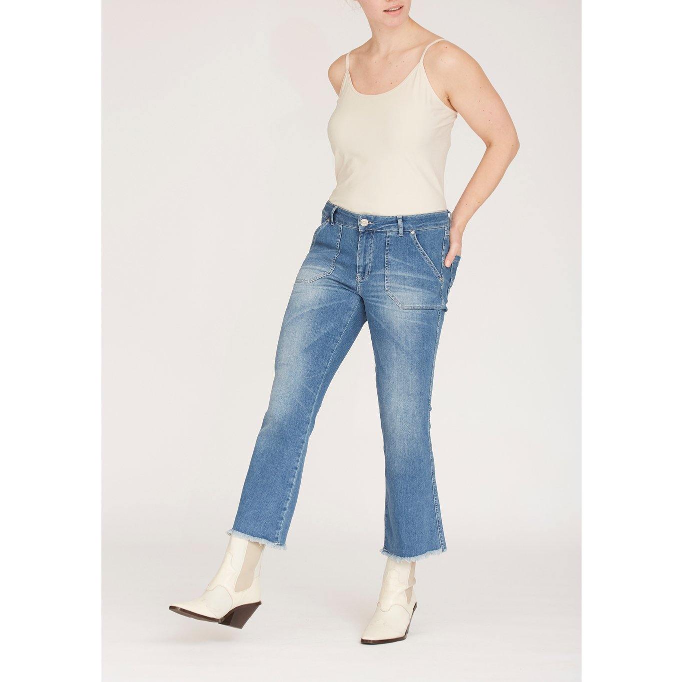 Snygga, trendiga jeans med påsydda fickor fram och bootcut modell med raw benslut.