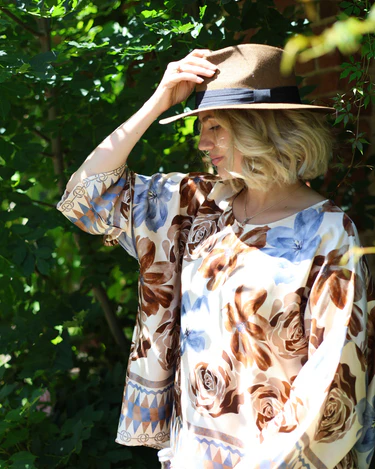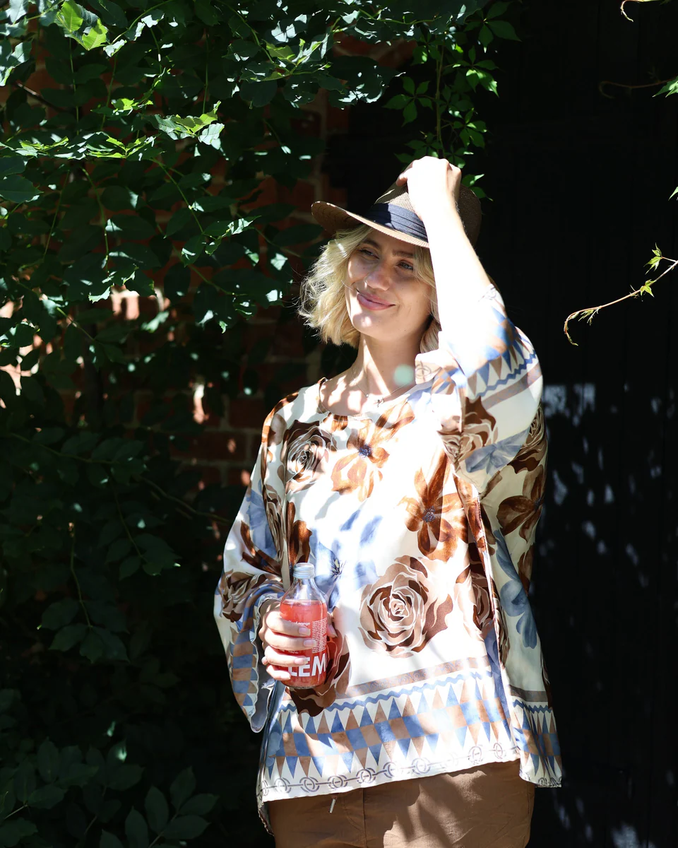 Perfekt sommartopp i viskos med blommigt mönster och vid, rymlig passform för en bekväm och stilfull look. Finns i Brown/Denim och Black/Beige.