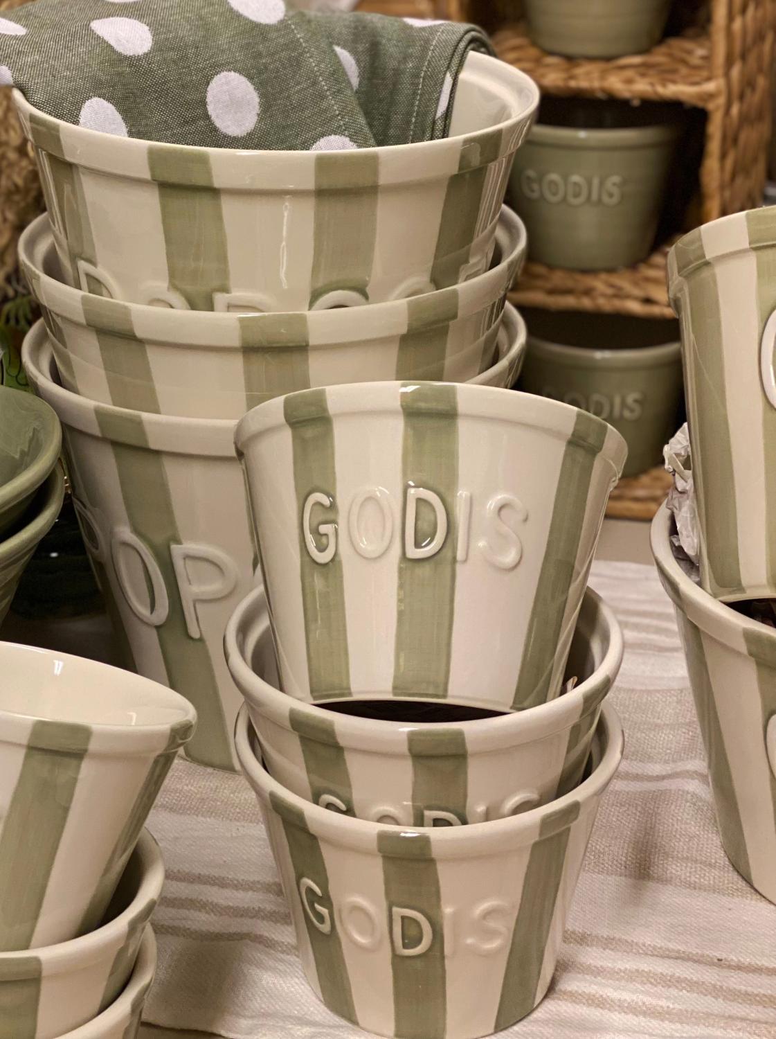 Godisskål Sage Randig med vit text