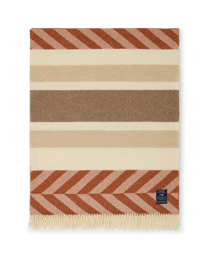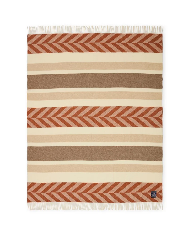 Herringbone striped recycled Wool Throw - Copper/brown 130x170cm