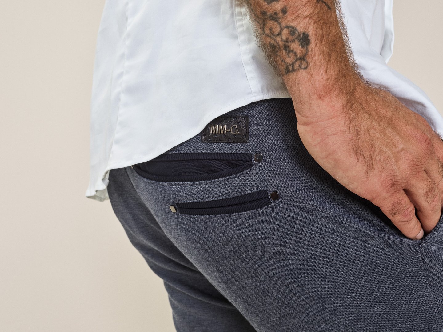 Snygga, coola avslappnade byxor. Designad i smal passform och medelhöga, knappstängning och dold dragkedja. Dessa är gjorda i ett mjukt texturerat tyg med ett inslag av stretch, perfekt för långa dagar på jobbet eller i bilen. Styla med en T-shirt och bomberjacka för en avslappnad look, byt till en kavaj för att dressa upp dom.