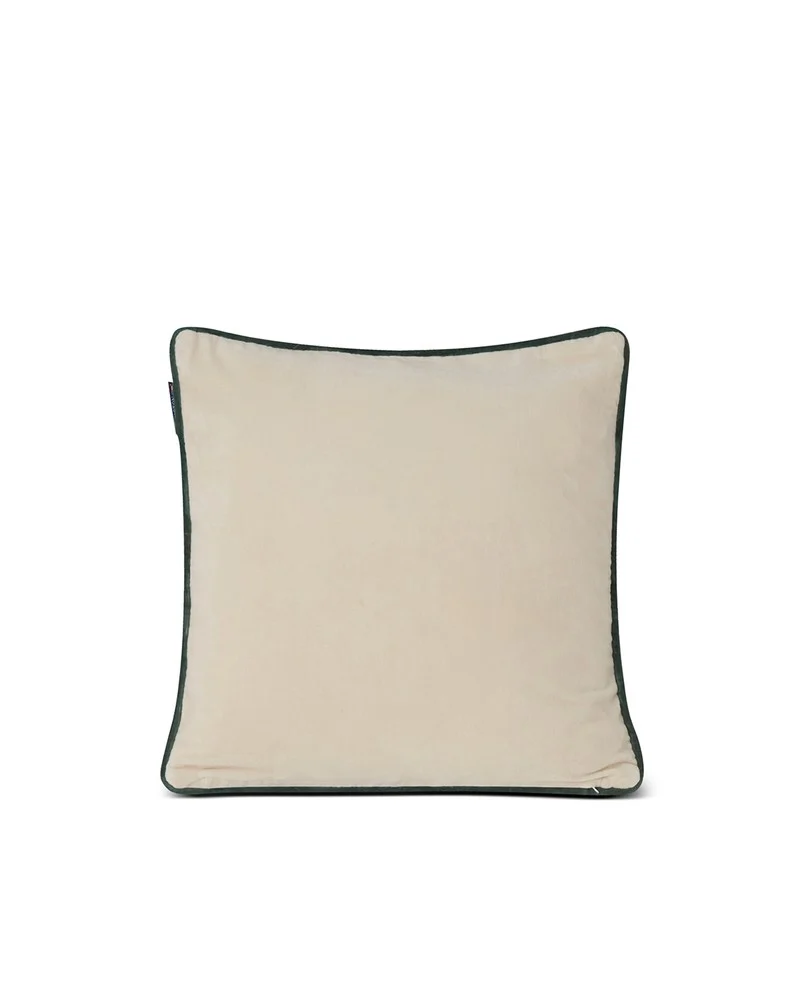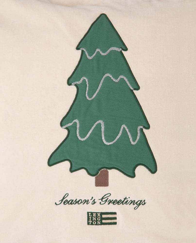 Behöver du lite omedelbar julkänsla? Prydnadskuddar är ett enkelt sätt att komma i julstämning och passar nästan var som helst i hemmet! Denna kudde har en bedårande vintrig gran med broderade detaljer på en supermjuk, ljust beige bakgrund av bomullssammet. Gröna passpoalkanter kompletterar looken och en blixtlåsförsedd botten gör det superenkelt att byta fodral. OEKO-TEX-certifieringen garanterar dessutom att inga skadliga ämnen använts i tillverkningen.