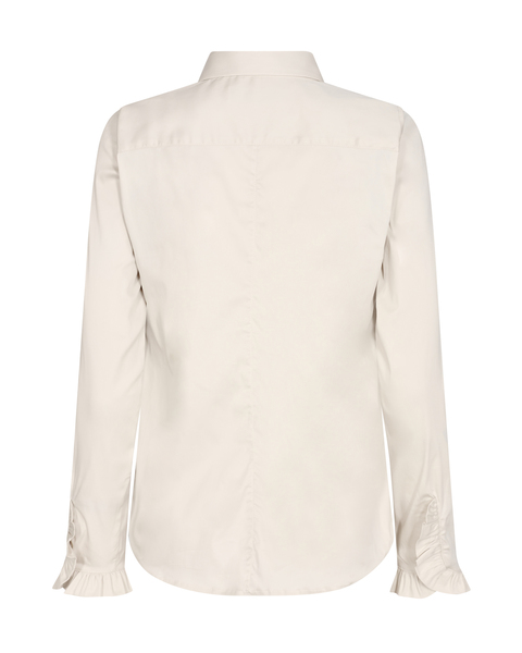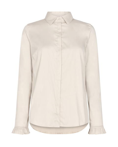 Vill du lägga till en feminin touch till din outfit. Otroligt skön kjorta med slimmad passform, tillverkad i det mjukaste stretchiga tyget med klassisk krage, feminina volangmanschetter och klassisk knappförslutning. Styla den med kavaj eller tröja och låt den fina manschetten kika ut ur ärmarna.