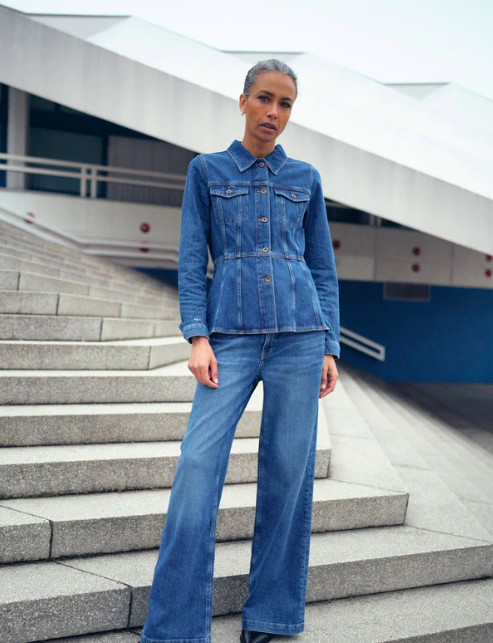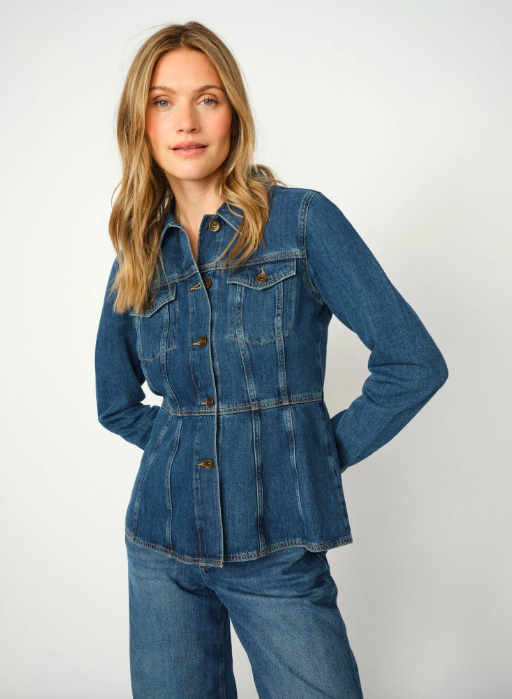 Denna stiliga jeansskjorta är designad med en figurnära silhuett som skapar en perfekt balans mellan edgy och feminin. Med en klassisk krage, knappstängning och funktionella fickor är den prydd med delikat sömnad för en lyxig finish. Bär den med skräddarsydda byxor för en sofistikerad look, eller omfamna trenden med denim på denim genom att para ihop den med dina favoritjeans.