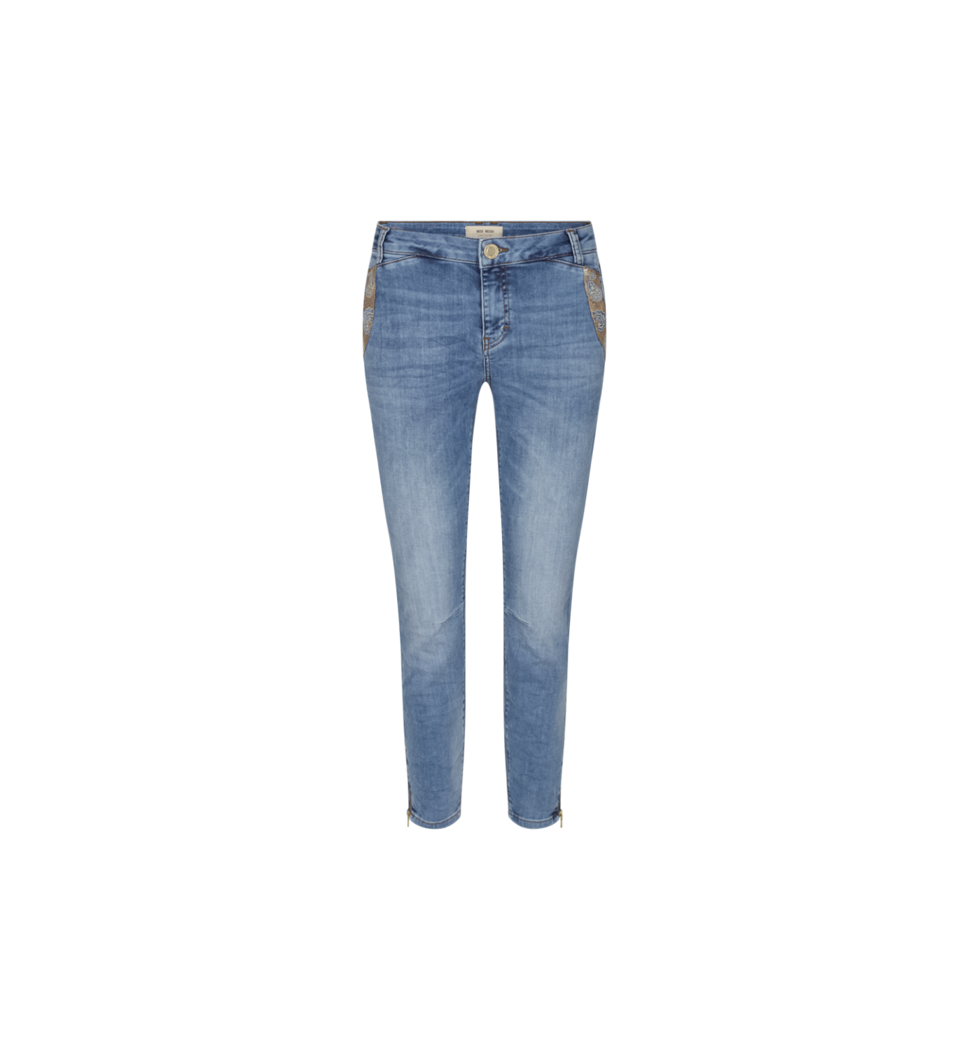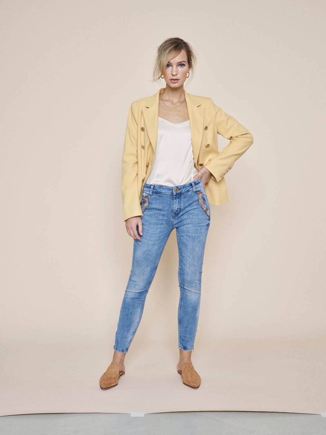 Snygga blåjeans med detaljer på framfickorna med brodyr och paljetter. På bakfickorna liten detalj med paljetter.