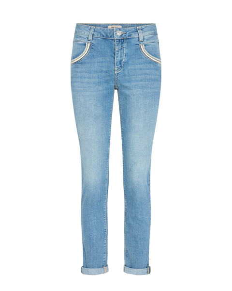 Snygg jeans tillverkade av bomull och designade i en vanlig passform med hög/midja. Flätad dekoration på fickorna och ett lädermärke på baksidan.