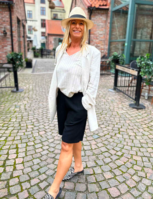 Det rekommenderas att sträcka ut shortsen när de är våta och stryka dem när de är torra för att minimera krympning. Strykning efter tvätt är nödvändig. Plagget kan krympa upp till 10 cm i längd, men det mesta kan strykas ut. Upp till cirka 5% krympning är acceptabelt och förväntat för denna kvalitet.