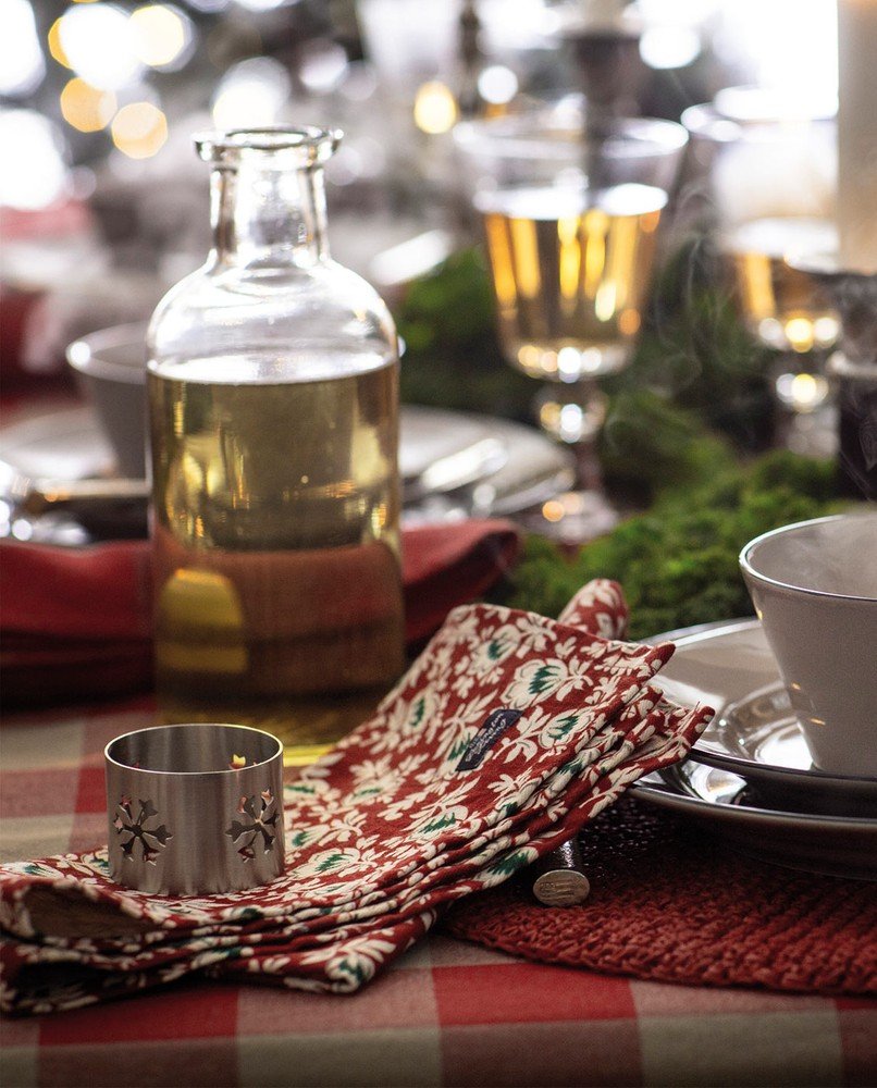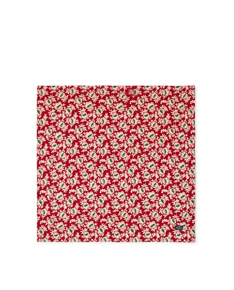 Denna servett i ekologisk bomull har ett exklusivt blommönster över hela i en blandning av rött och beige och kommer att bli det givna samtalsämnet vid varje middagsbord. Denna servett i bomullstwill är tillverkad i Indien och avslutas med en uppvikt kant.