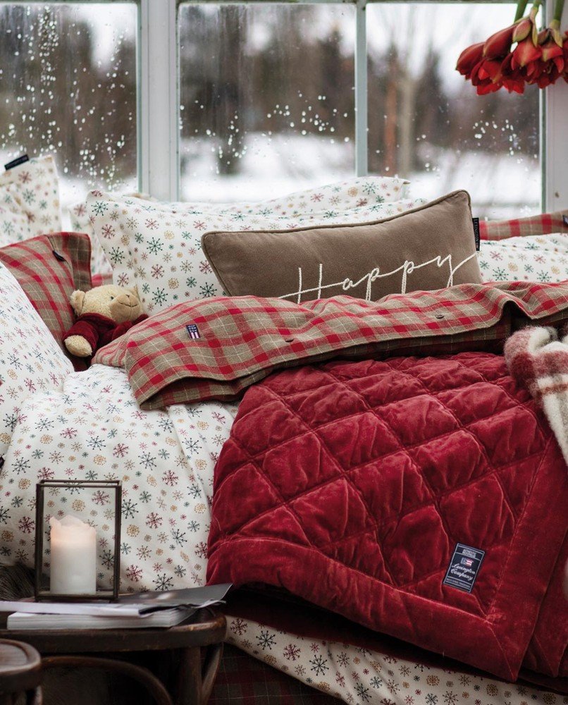 Mjukt överkast av ren bomull som har en sammetsliknande struktur med en bred kant i samma tyg längs kanterna och Lexingtons logga i hörnet. Lätt stoppning av återvunnen polyester.