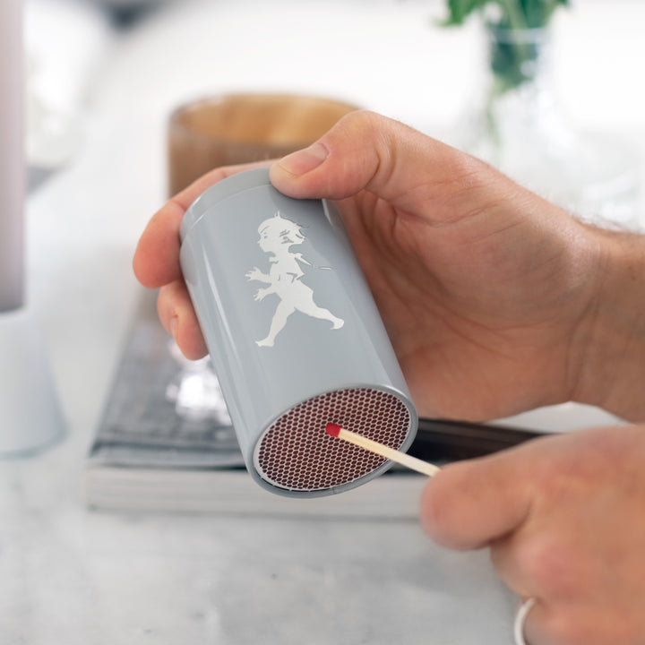 Stilrent tändsticksrör i plåt med avbildning av den klassiska Solstickepojken skapad av Einar Nerman 1936. Röret innehåller cirka 100 st extra långa svenska kvalitetständstickor tillverkade i Tidaholm av asp från svenska skogar.