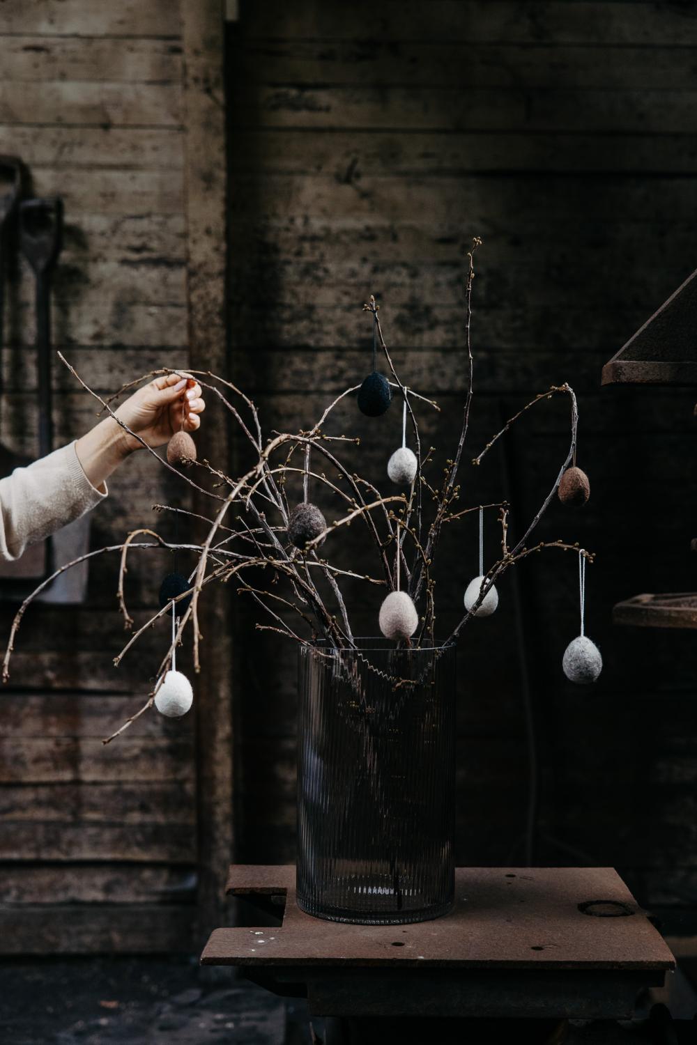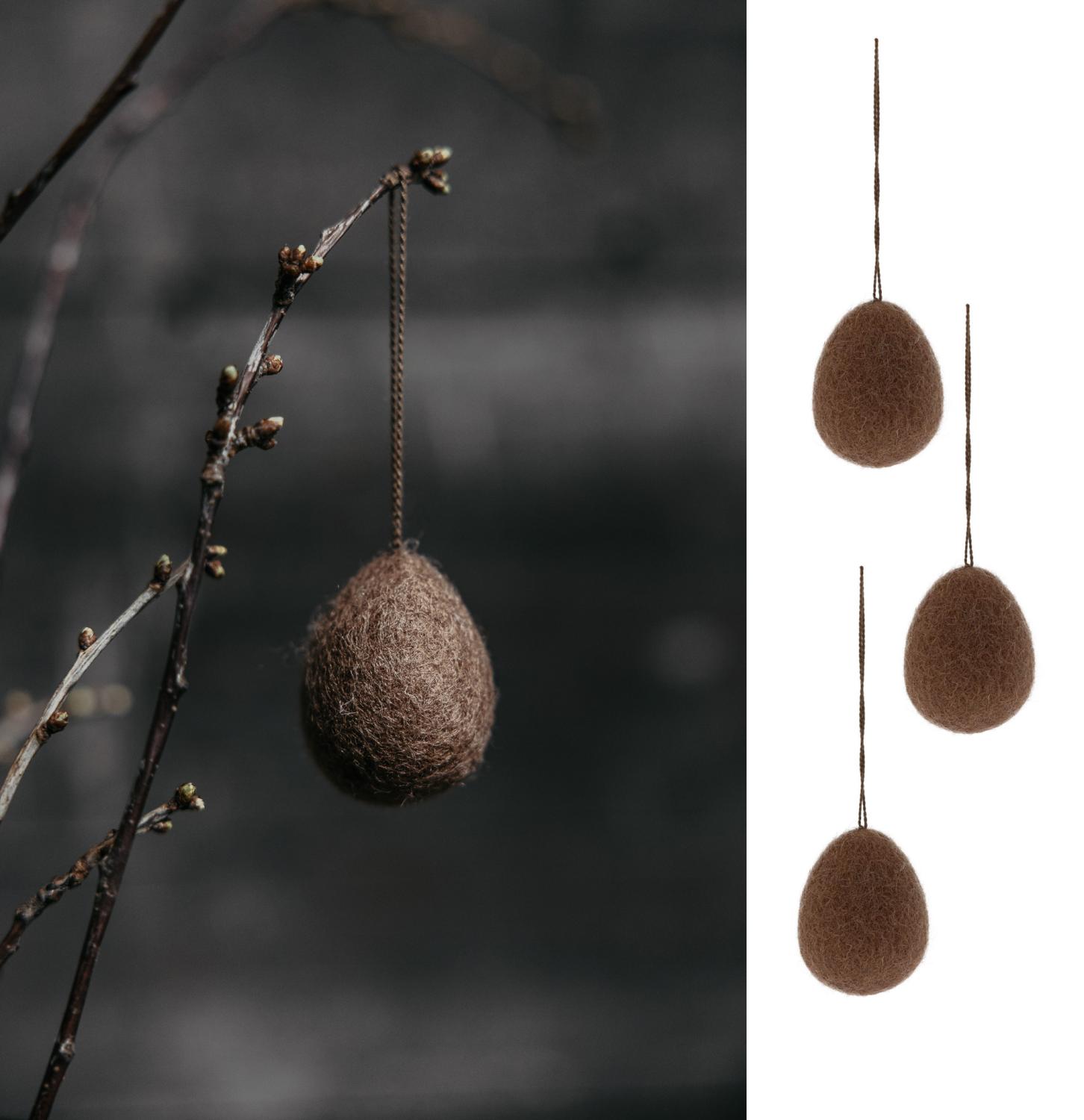 Brunt tovat ägg med hängsmycke. Passar utmärkt i påskriset, på presentinslagningen eller som dekoration på byrån. Du kan även klippa bort eller gömma banden om du föredrar att använda äggen som liggande dekoration.