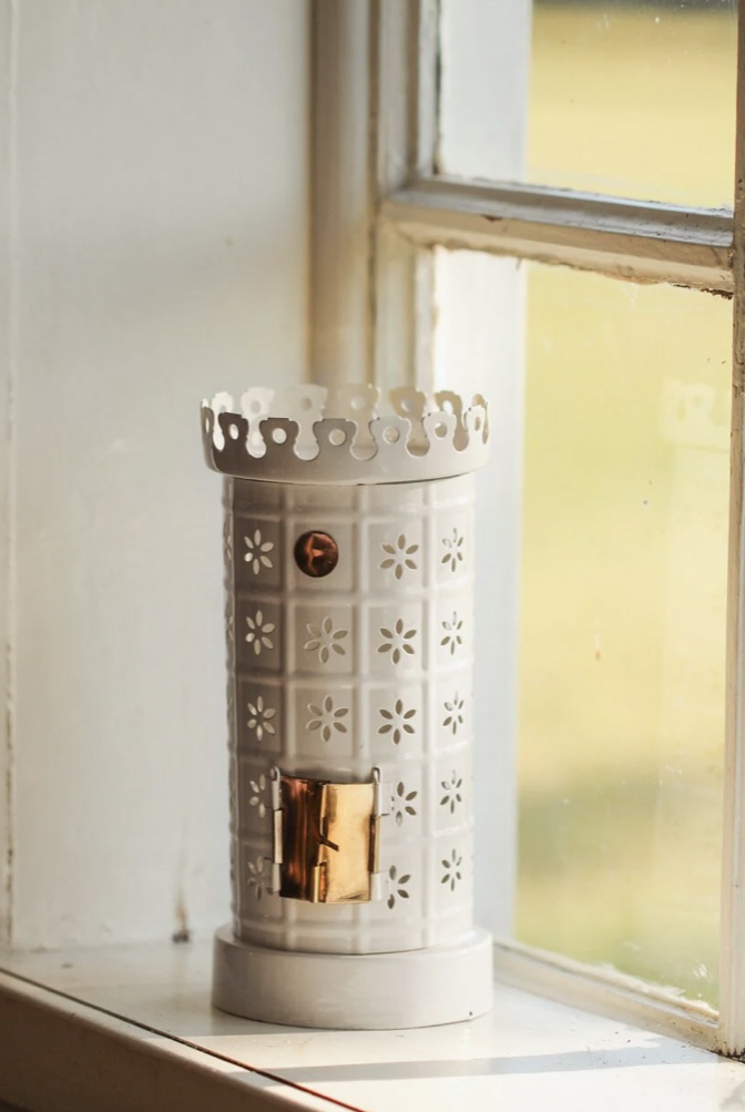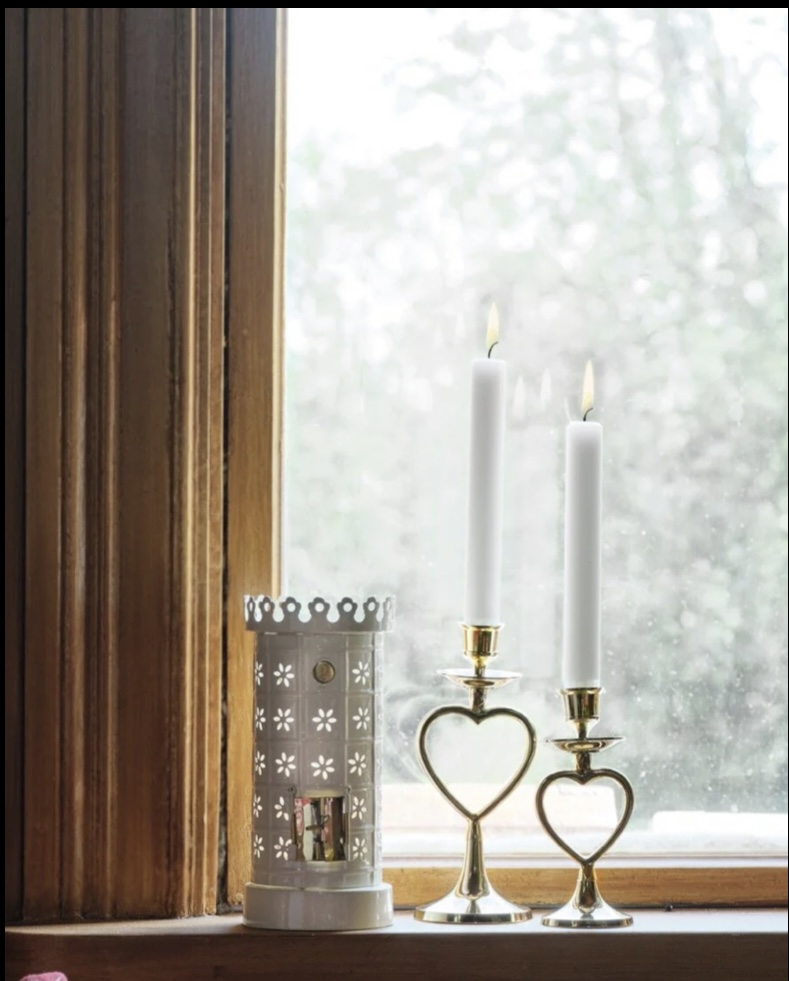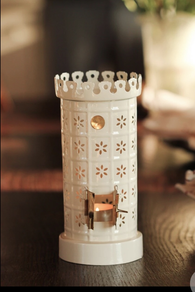 Så fin värmeljushållare, kakelugn. Otroligt välgjord och fin. Luckorna går att öppna så att man kan se "elden" från värmeljuset. Lyser så fint. Botten är avtagbar så man kan sätta in ljuset lätt.